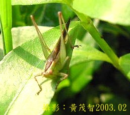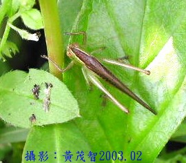 | 外觀特徵 | 褐背細斯頭至翅端長22~26mm。有淡綠色濕褐色兩種不同體色個體;體背部和翅膀均為褐;各腳腿節與脛節間無黑色斑。雌蟲產卵管長度約達翅膀末端。 | |
